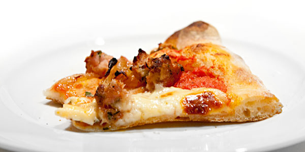 Two words: Tuna Sausage. Two more: Crazy good. Charles from Cafe Josie stopped by with the surprise topping. The Godfather was stripped of it’s Italian Sausage and Smoked Mozzarella. The Smoked Tuna Sausage went on with regular Mozzarella.