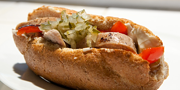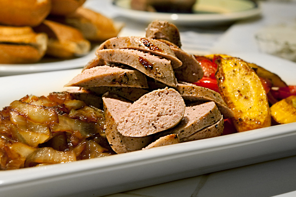 Memorial day is about grilling. It’s the one thing that stands between us and the savages. Our ability to flame broil boutique local charcuterie and wash it down with barley and hops is our god given right. Let me introduce the players: Dai Due Boudin Blanc (meat magic), caramelized yellow onions (the sweetness), grilled yellow squash and red bell peppers (the tart and crunch). It’s like magic (and I don’t even use a rabbit).