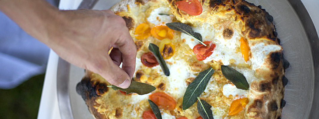 Polka Dot: Parmesan, Mozzarella (Antonelli’s Cheese Shop), Cherry Tomato (Milagro Farm), Fried Sage (our garden), Shaved Garlic and Red Pepper Flakes $12