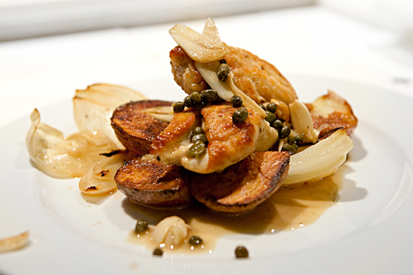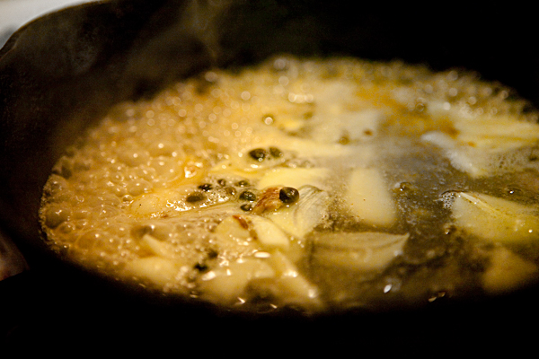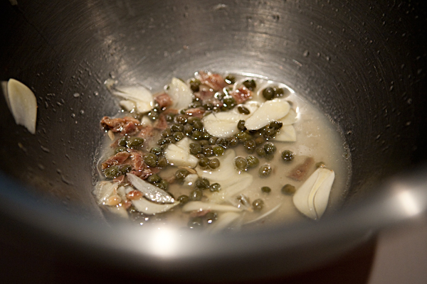 White Wine, Lemon, Capers, Garlic, Anchovies = Umami. Way more lemon then I have ever offered up to this dish. Taste buds explode, then I craved another bite. Like eating way too hot salsa. The only way to mitigate the pain is to keep eating. Potatoes were a perfect respite.
