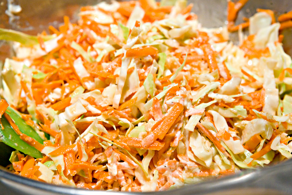 Cabbage, Carrot, Vinegar, Honey, Salt, Peper, Mayo